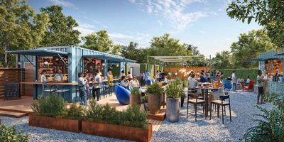 New community beer garden opening in Plainville Square. Installation of plumbing systems.
